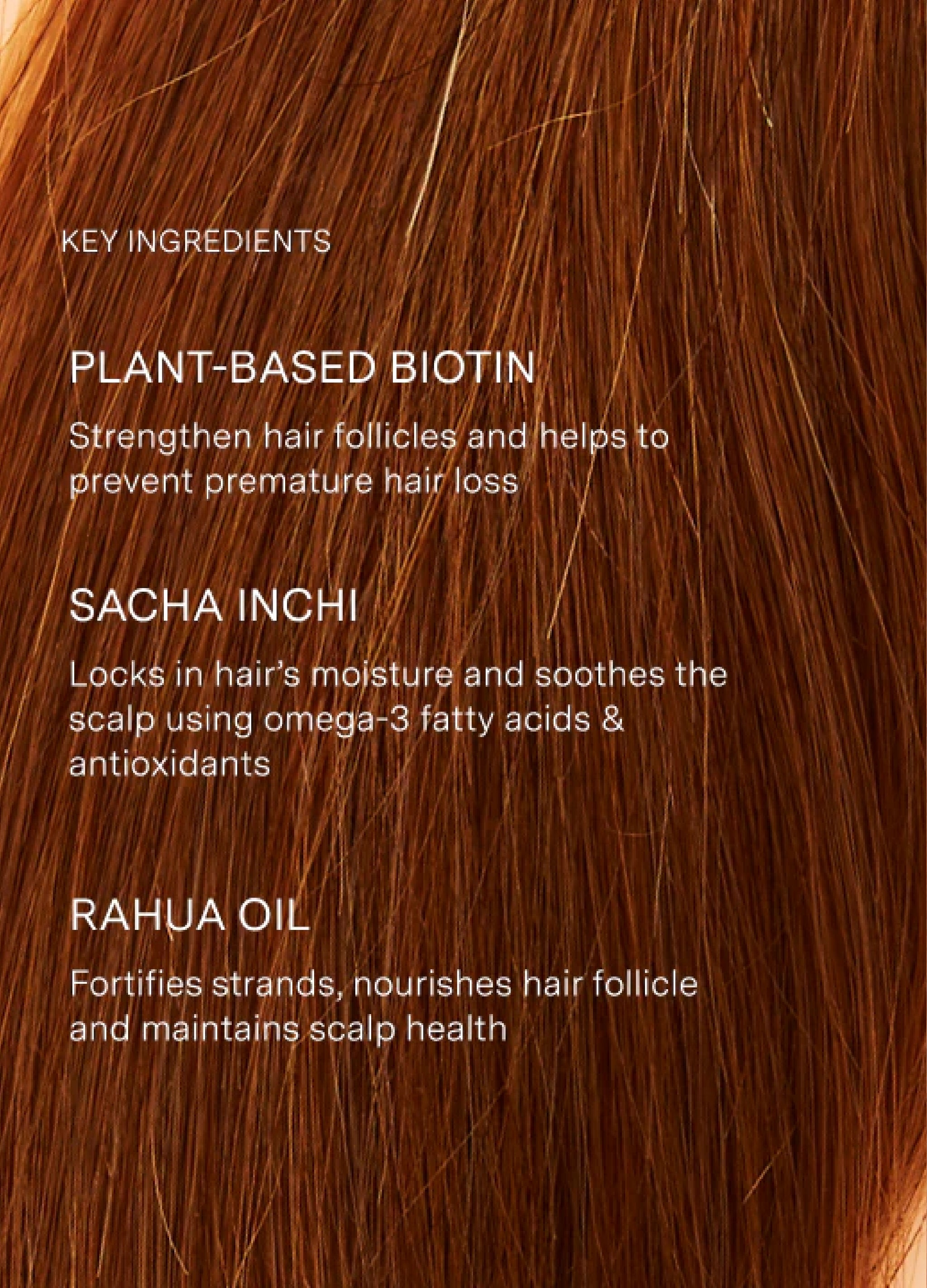 Questa formula ispirata ai tropici dona vitalità e luminosità a tutti i tipi di capelli. Creata come una celebrazione del paradiso, contiene biotina vegetale ed essenziali vitamine B6, A, C ed E per fortificare il follicolo e aiutare a prevenire la caduta prematura. Gli oli di Guayusa, Rahua, Morete e Sacha Inchi — coltivati nella foresta amazzonica — lavorano in sinergia per favorire una crescita sana, aumentare la brillantezza e migliorare la resilienza. Il risultato sono capelli più forti, elastici e luminosi. Lo shampoo crea una schiuma delicata che deterge efficacemente senza eliminare gli oli naturali, rendendolo ideale per tutti i tipi di capelli che desiderano forza e nutrimento.