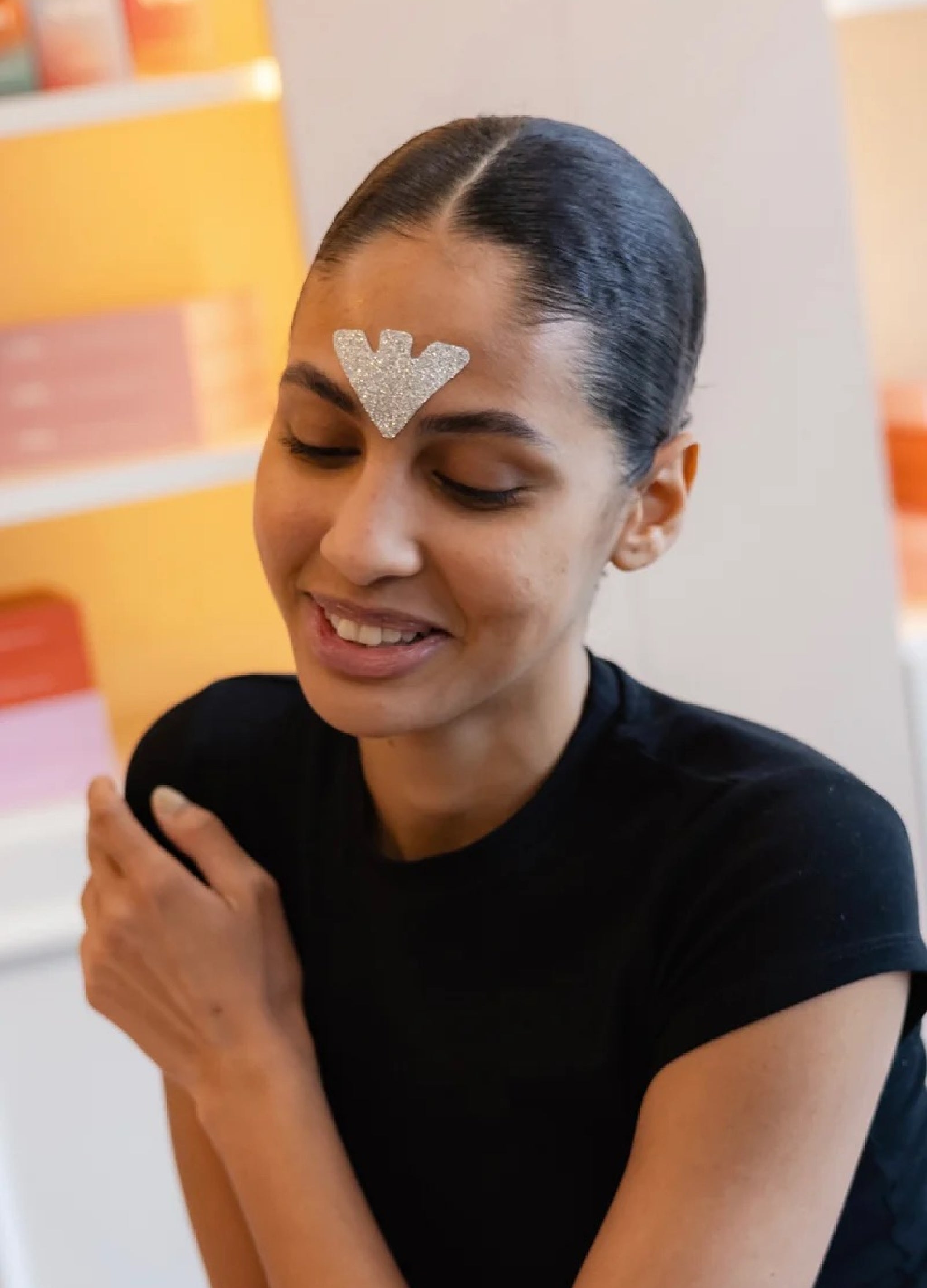 Un sistema di taping giocoso ma funzionale, progettato per rilassare l’area glabellare e ammorbidire le linee di espressione, aggiungendo un tocco di glamour. Questi patch gioiello autoadesivi riducono delicatamente la tensione tra le sopracciglia, aiutando a prevenire le contrazioni abituali e i segni espressivi. Sviluppati con cura come alternativa clean e non invasiva agli iniettabili, agiscono favorendo consapevolezza e rilascio della contrazione muscolare, mantenendo l’espressione naturale morbida e aperta. Ideali per l’uso quotidiano o per momenti speciali, dove bellezza e divertimento si incontrano.